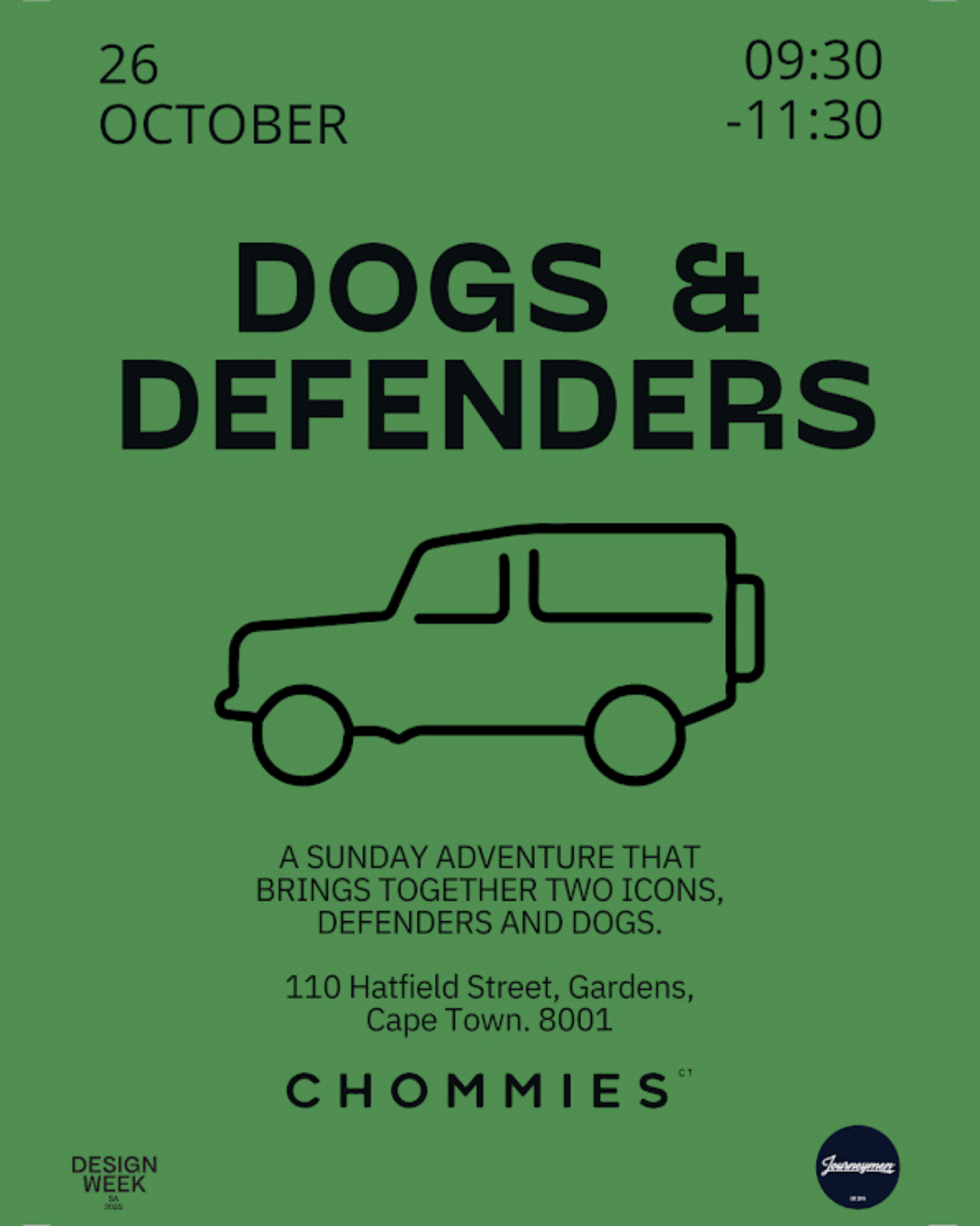 Chommies is teaming up with Journeymen Cape Town for a Sunday adventure that brings together two icons, Defenders and dogs.